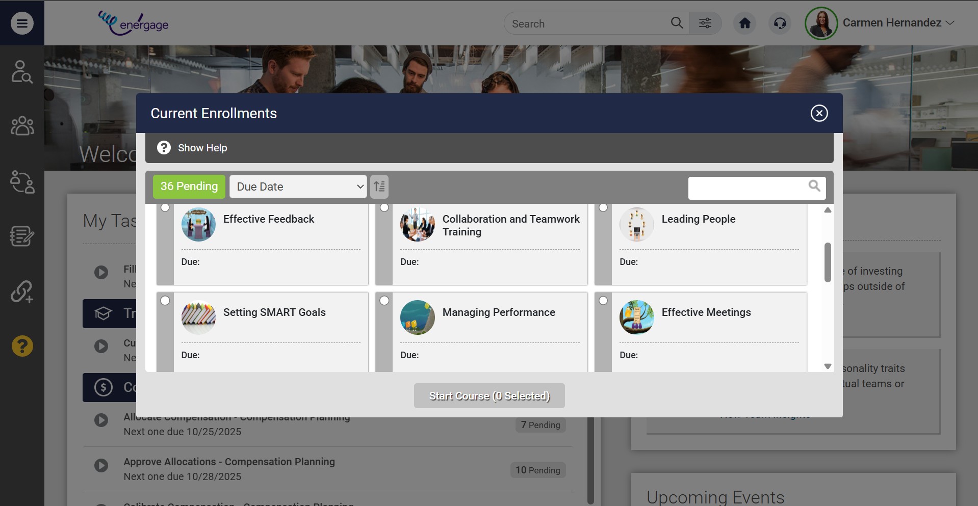 - In-platform access: launch learning from employee profiles and Energage modules.