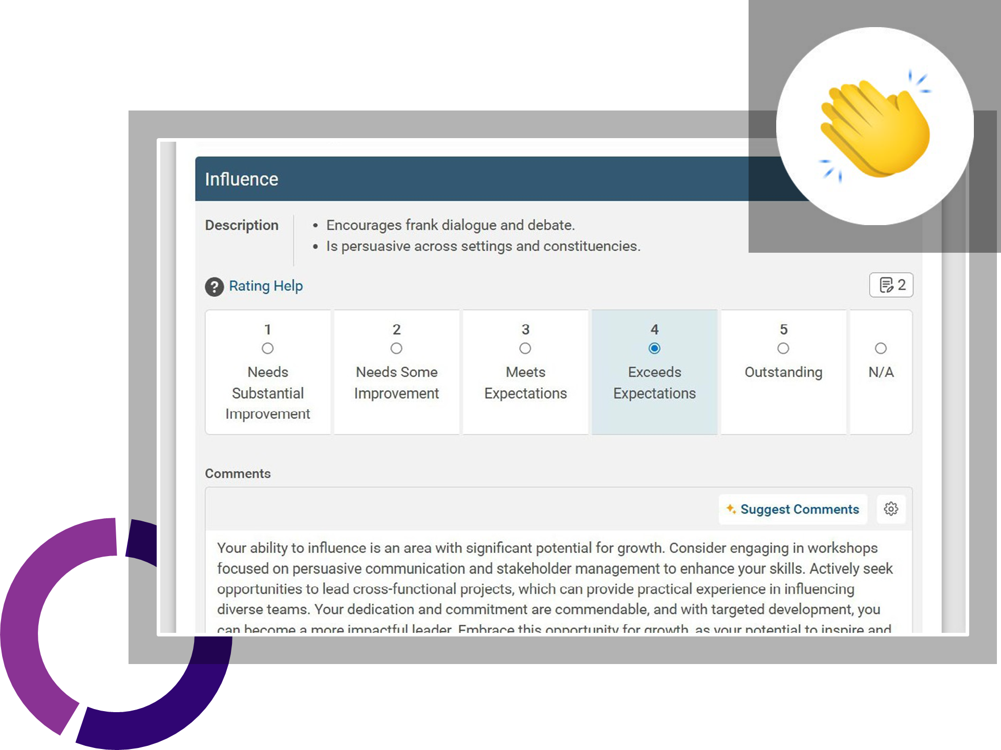- Use the Energage AI assistant for performance feedback comments.